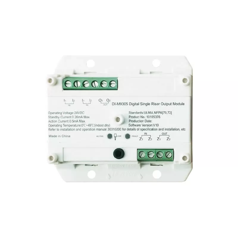 Addressable single riser output module is dedicated to one riser or zone operation to simplify wiring. It receives command from the FACP to control the power on or off, so to trigger connected fire safety equipment.
