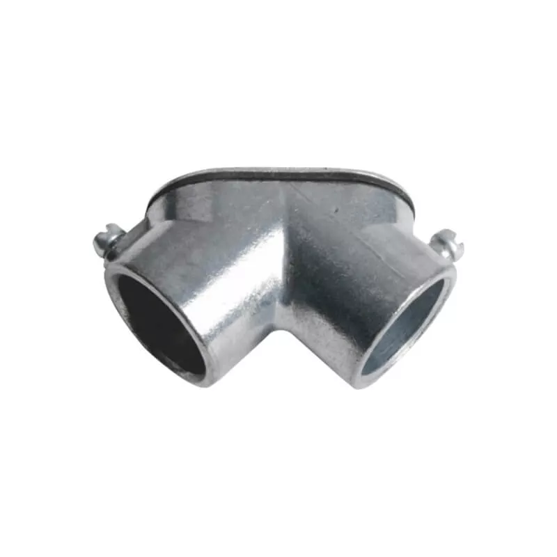 EMT pull elbow is a 90° conduit fitting designed for Electrical Metallic Tubing (EMT). Featuring a convenient removable cover, it simplifies wire pulling through tight turns in EMT runs, making it ideal for space-constrained commercial and indoor applications.