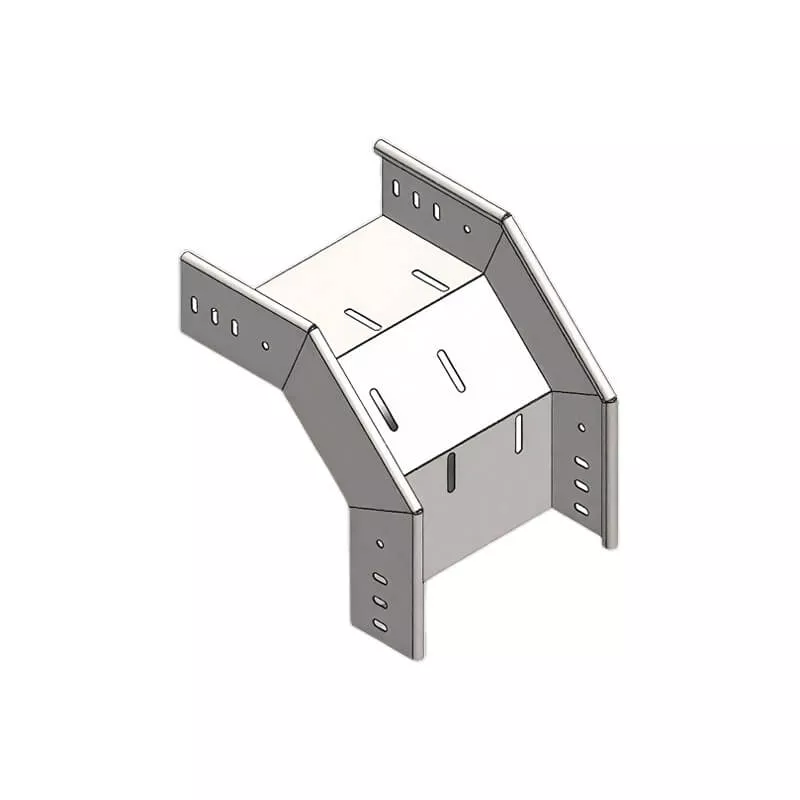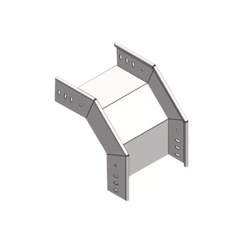Outside 90° vertical elbow connects two straight sections of channel cable tray to create a smooth 90‑degree turn in the outside vertical direction (rising transition). This rigid fitting maintains the structural integrity and load capacity of the cable tray system while facilitating cable routing around corners, obstacles, or layout requirements. It ensures reliable support and protection for power, data, and control cables across commercial, industrial, and infrastructure applications.