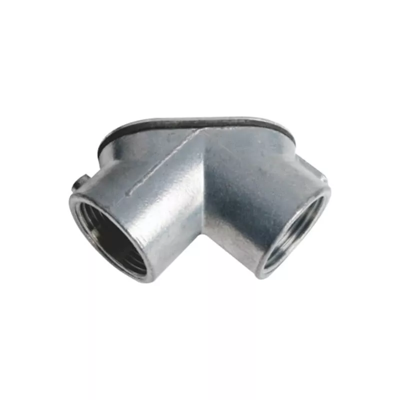 Rigid pull elbow is a 90° conduit fitting designed for Rigid Metal Conduit (RMC) or Intermediate Metal Conduit (IMC). Featuring a convenient removable cover, it simplifies wire pulling through tight turns in RMC or IMC runs, and it provides superior mechanical protection—perfect for demanding exposed or industrial environments.