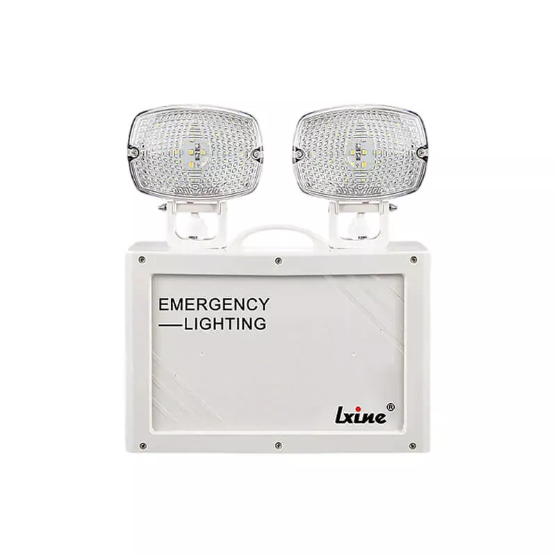 Self-contained waterproof non-maintained emergency light (2 adjustable heads) provides customizable illumination coverage during power outages. This classic surface-mounted fixture is suitable for ceiling or wall installation, both indoors and outdoors. It automatically and seamlessly switches to emergency mode upon detecting a main power failure.